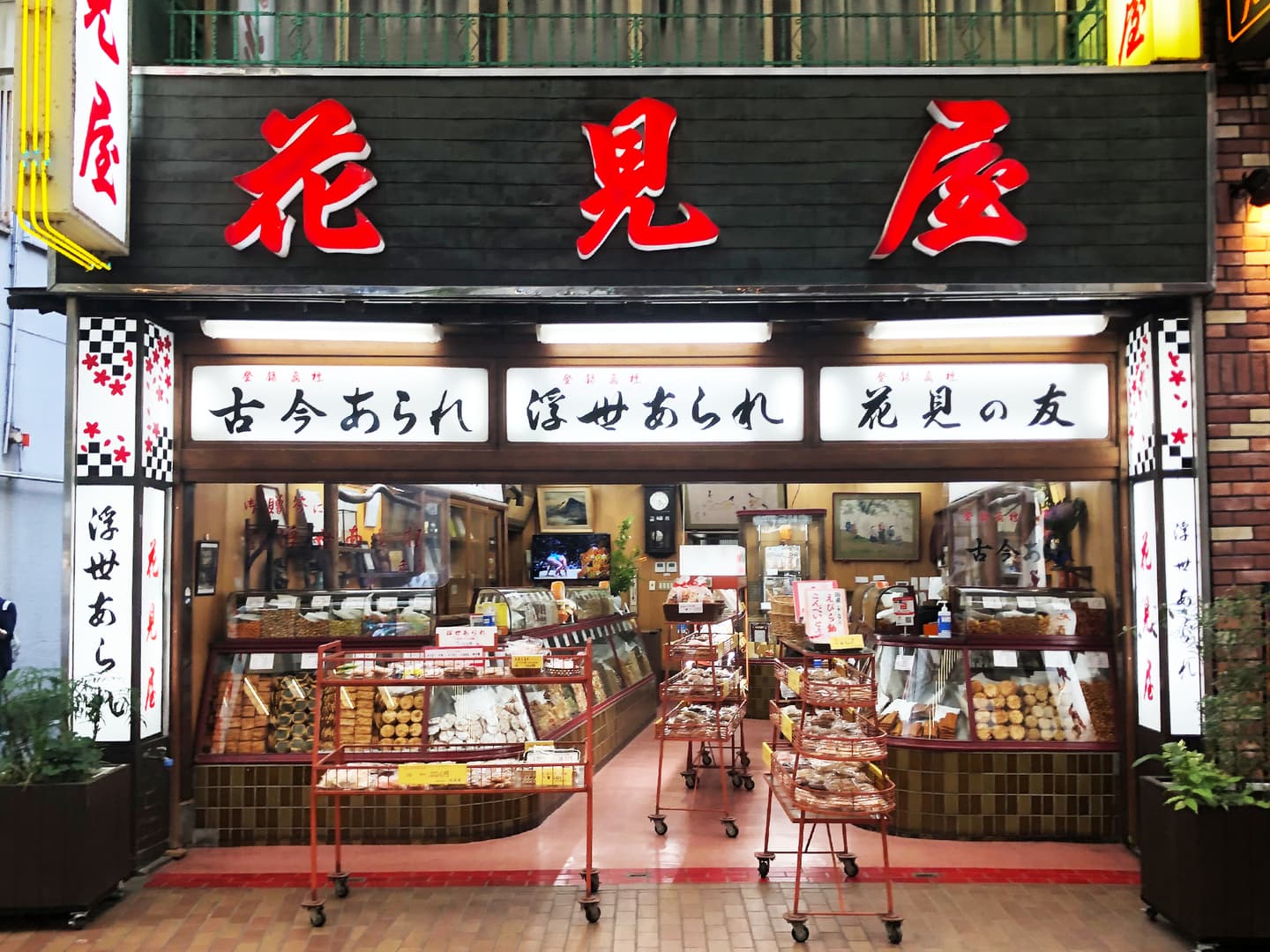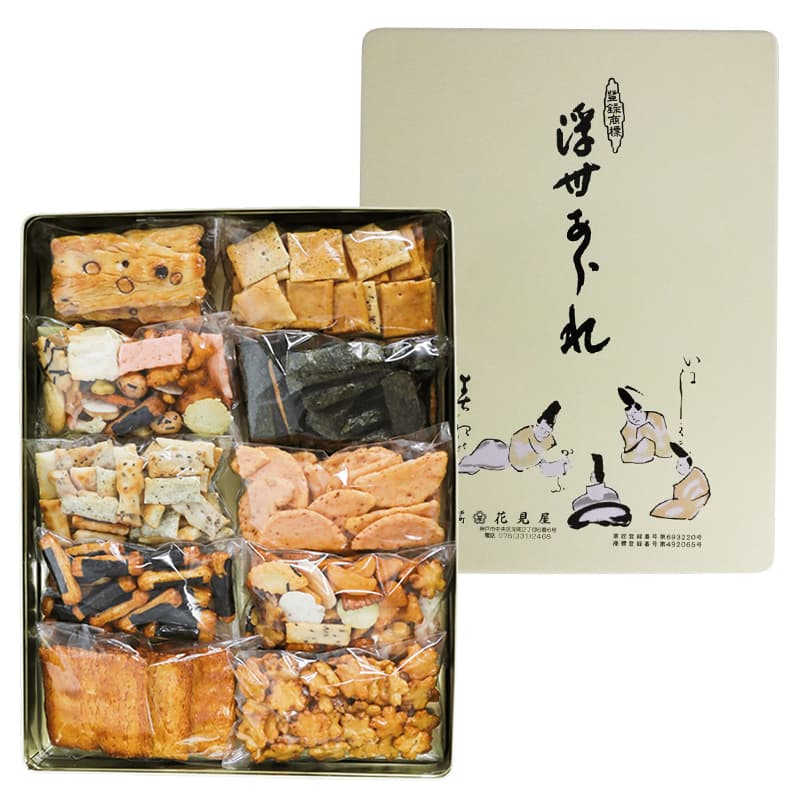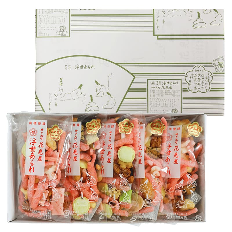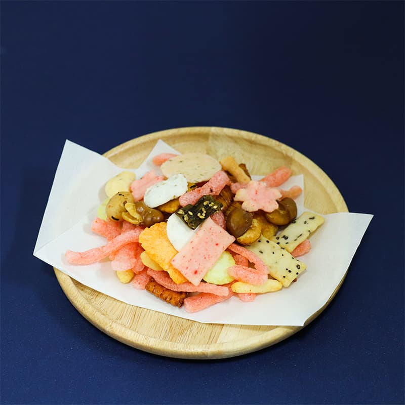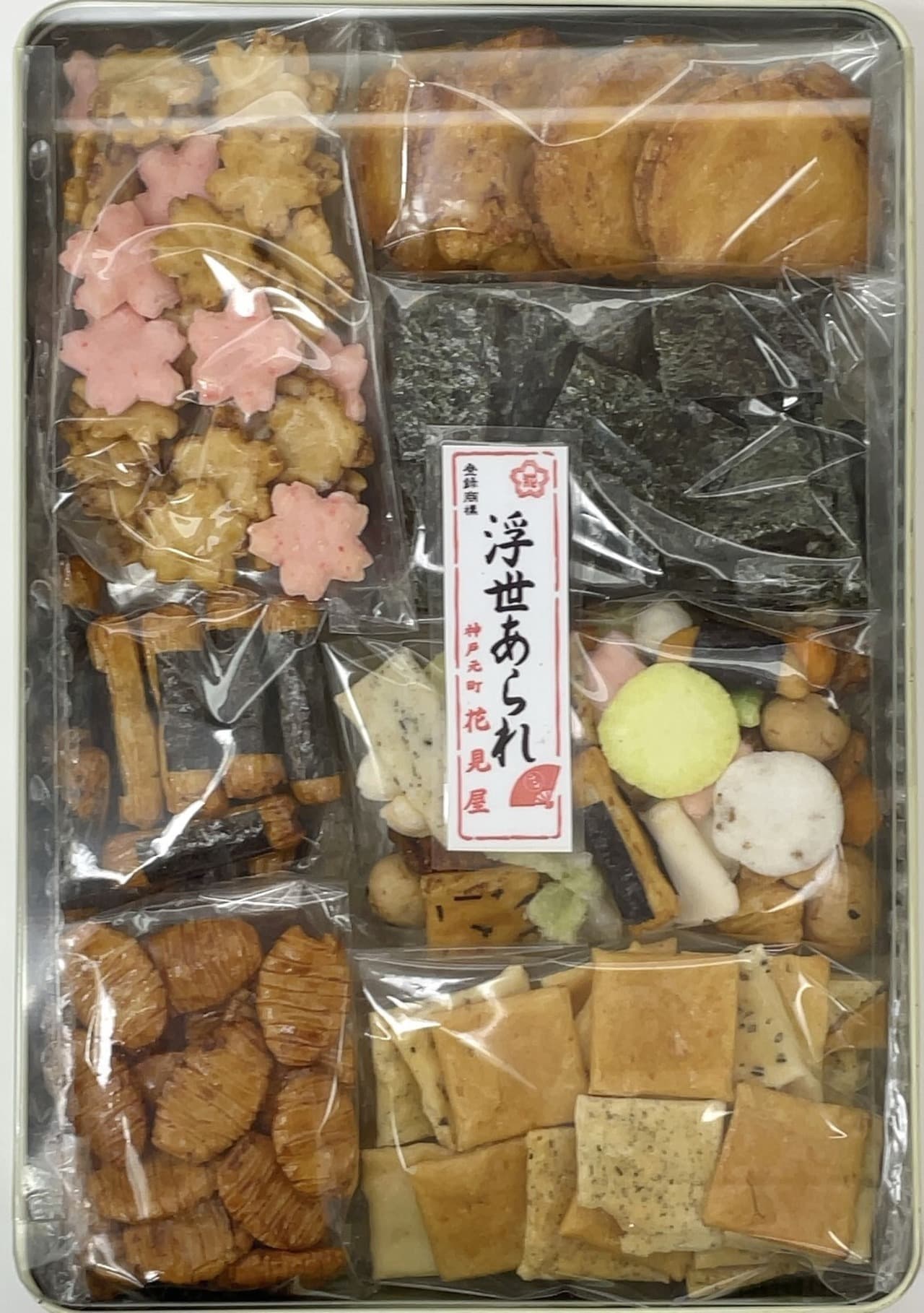 花見屋代表商品の、約40種のミックス「お好あられ」をはじめ、素材にこだわった約80種以上もの、あられ・せんべい・おつまみ・菓子を量り売りにて販売しております。